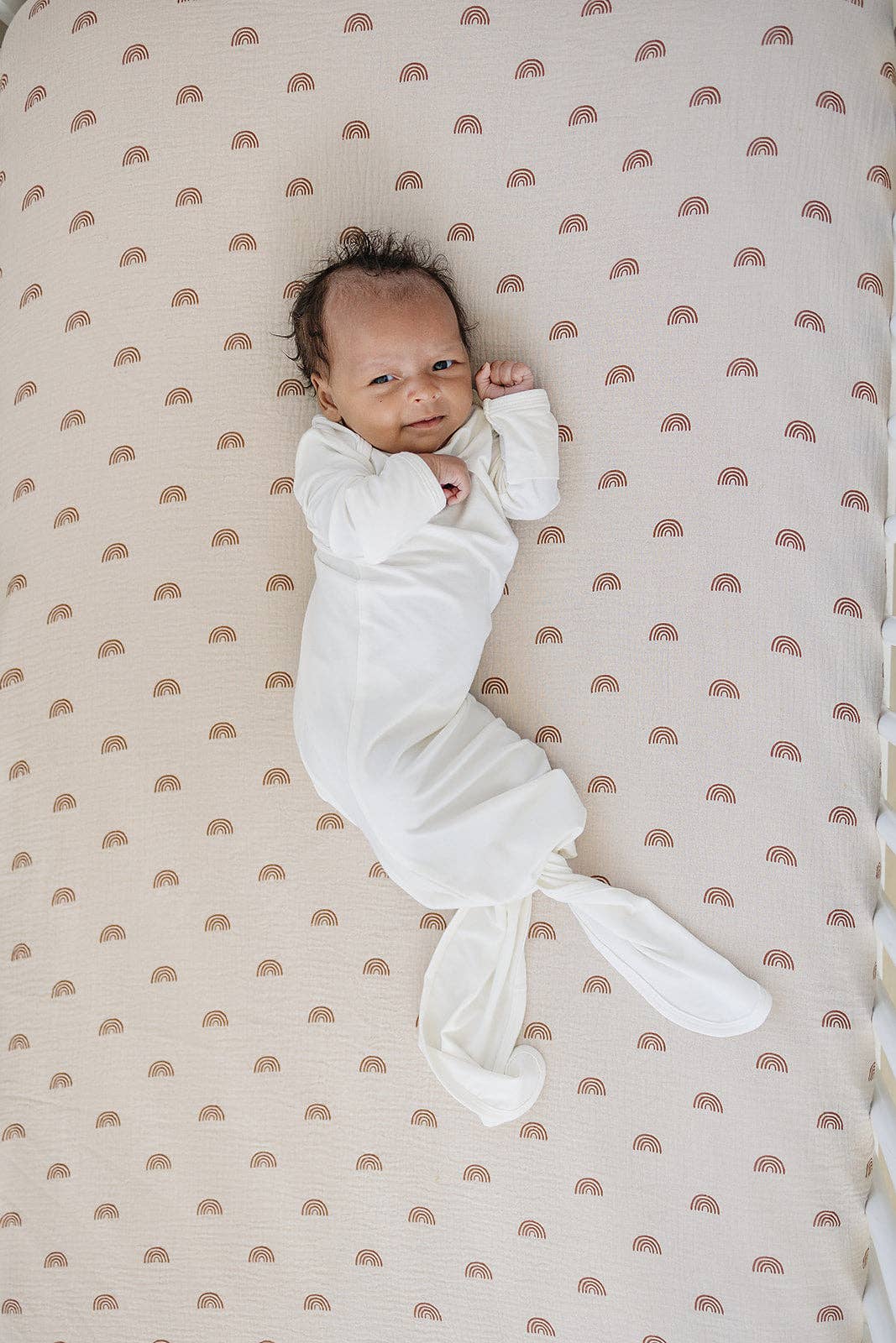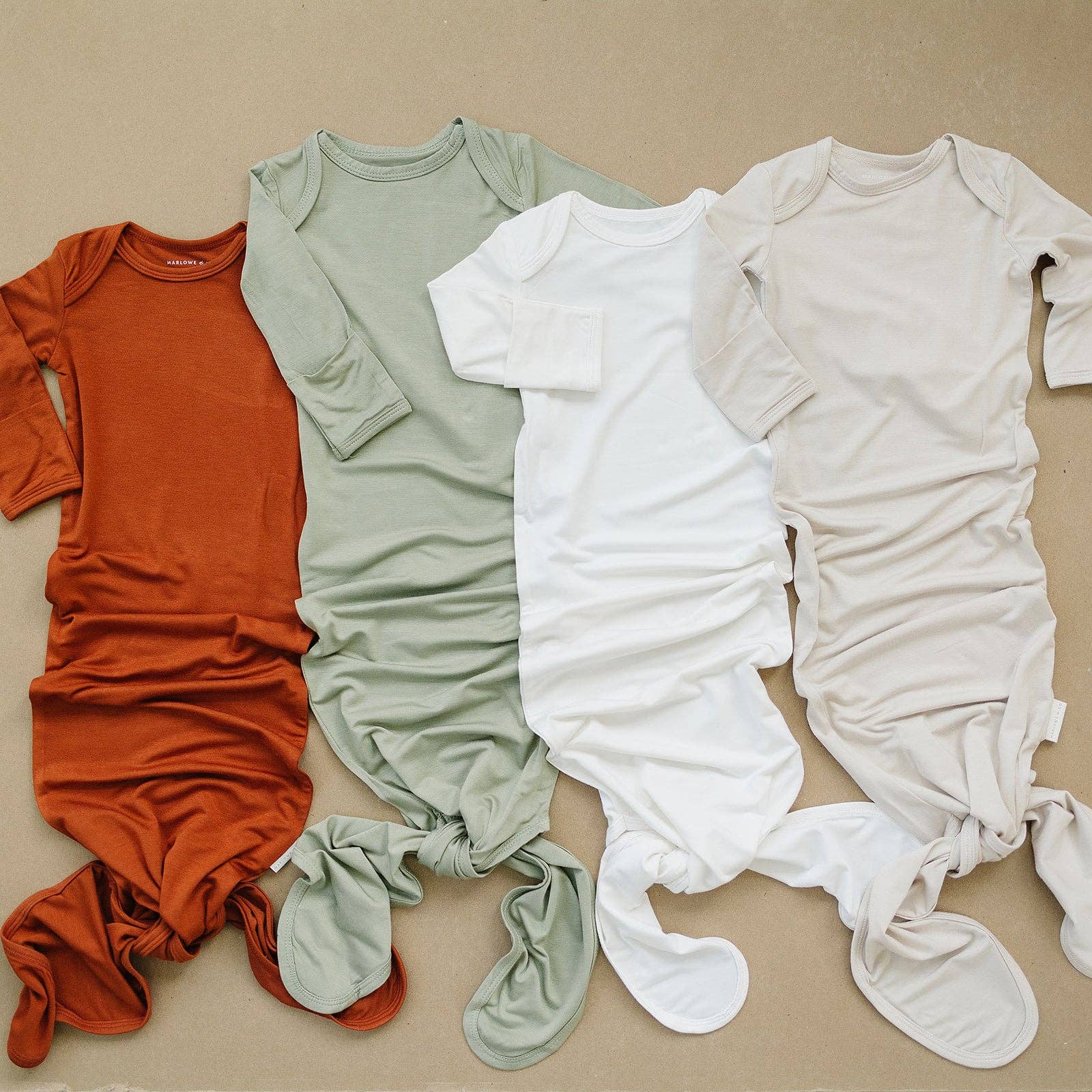 Viscose from Bamboo is one of the softest and most eco-friendly fabric choices for your little one, and will keep your baby comfortable in all seasons. Our gowns are made with high quality stitching, and will not lose their softness over time. Designed to be soft and delicate on your baby’s skin, our gowns will provide the perfect amount of stretch and comfort for your little one. The length of the knot is adjustable to allow your baby to grow with the gown. Our gowns feature convenient flaps that easily tie into a knot, allowing diaper changes and dressing your baby easier without having to hassle with zippers and snaps.