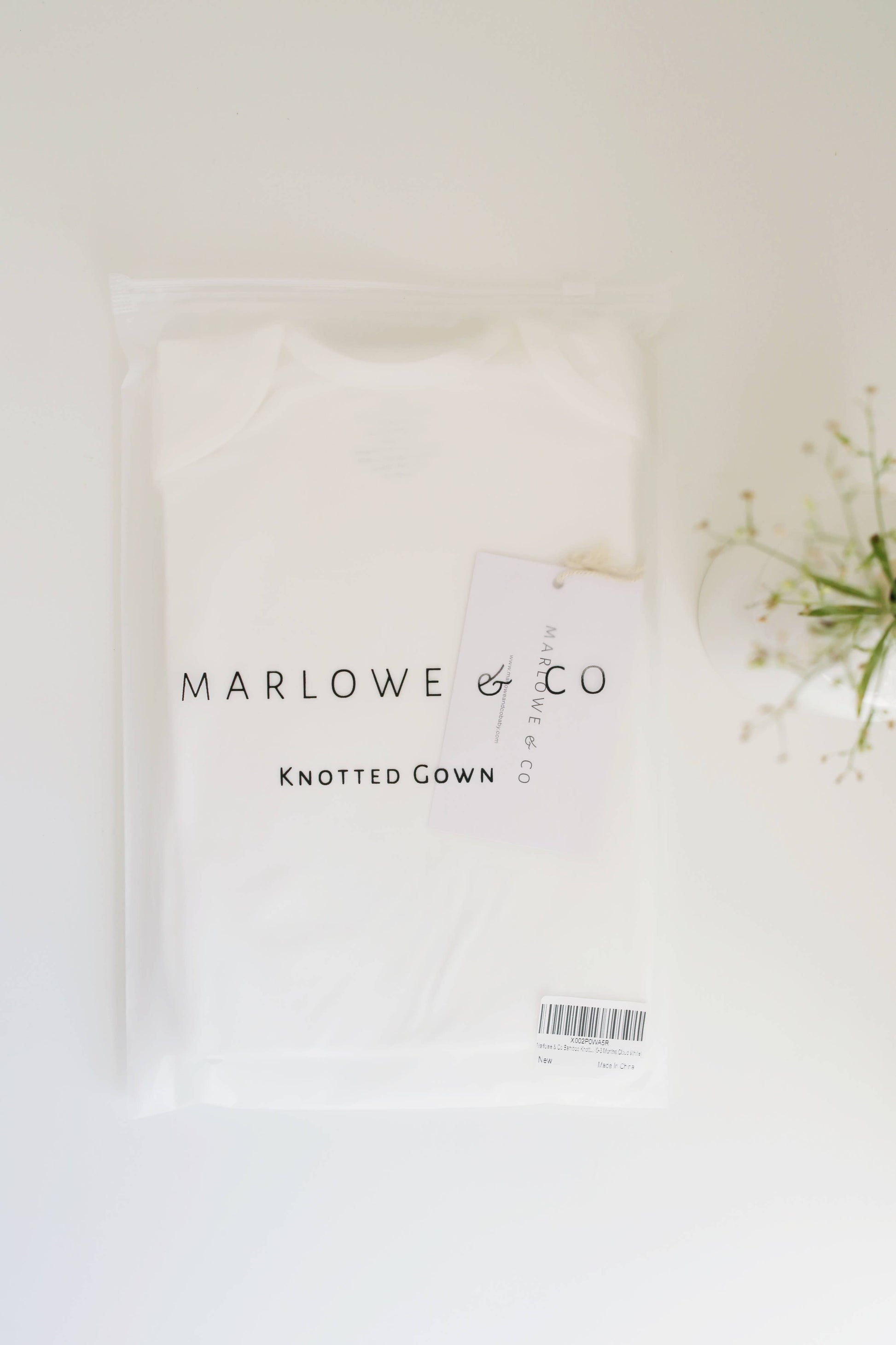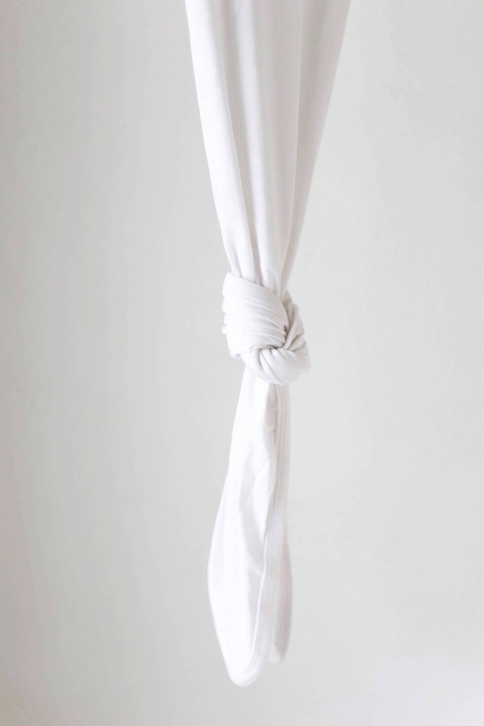Marlowe & Co's cloud white knotted gown is made from a soft buttery blend of 95% viscose from bamboo and 5% spandex fabric.
