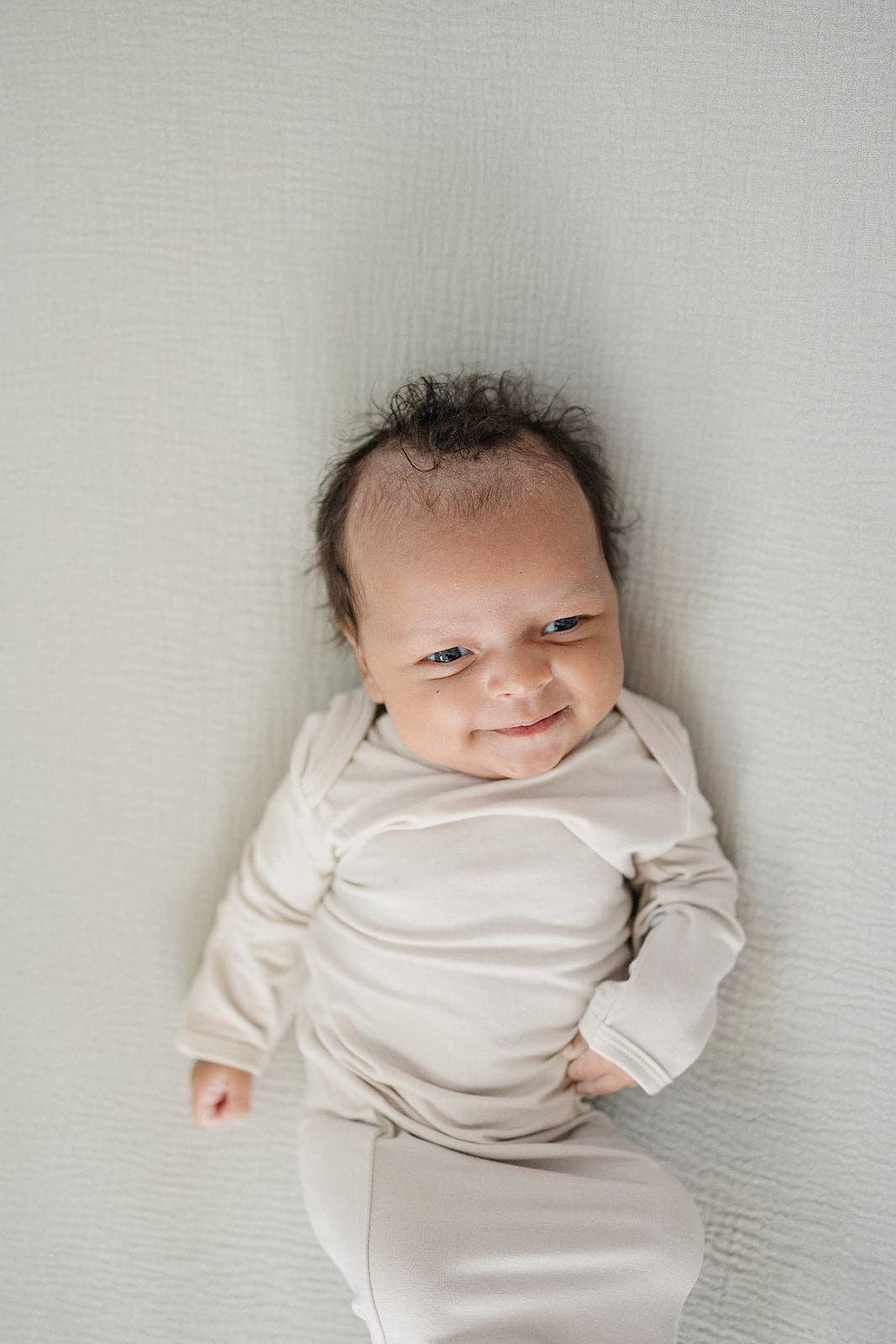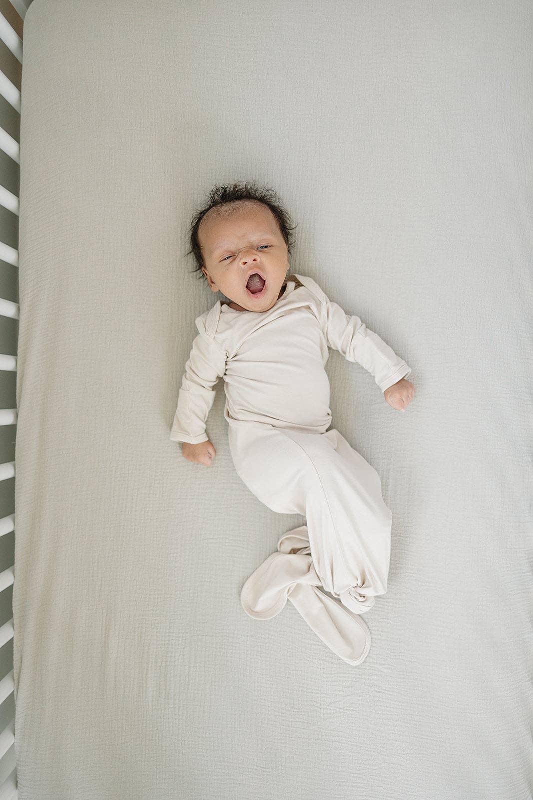 Viscose from Bamboo is one of the softest and most eco-friendly fabric choices for your little one, and will keep your baby comfortable in all seasons. Our gowns are made with high quality stitching, and will not lose their softness over time. Designed to be soft and delicate on your baby’s skin, our gowns will provide the perfect amount of stretch and comfort for you little one. The length of the knot is adjustable to allow your baby to grow with the gown.