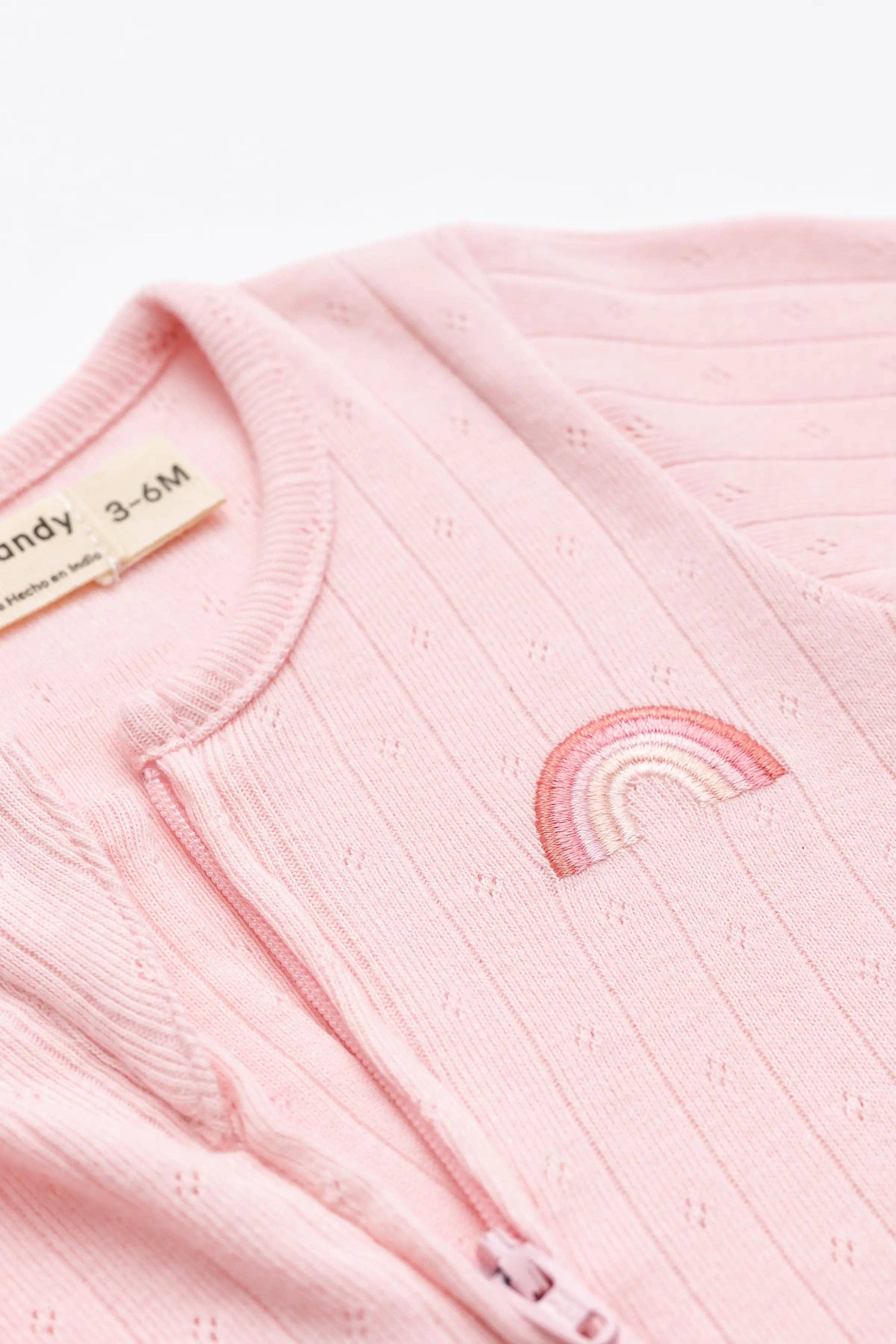Pointelle Embroidered Rainbow Zipper One-Piece
