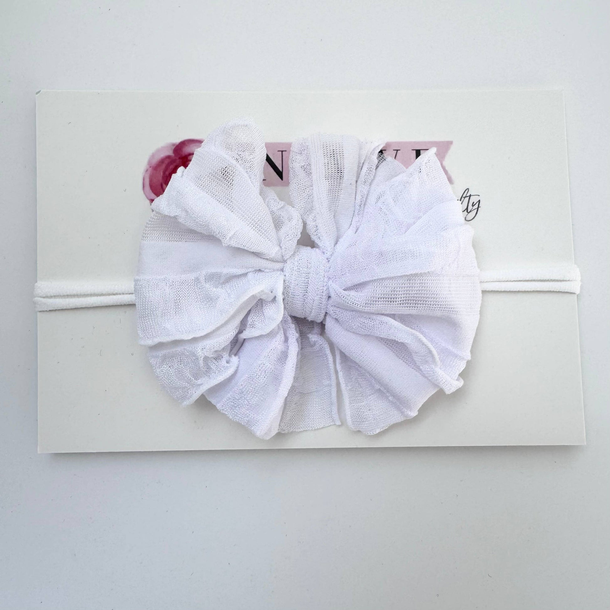 Rockin Royalty - Skinny Mini Ruffled Headband- White