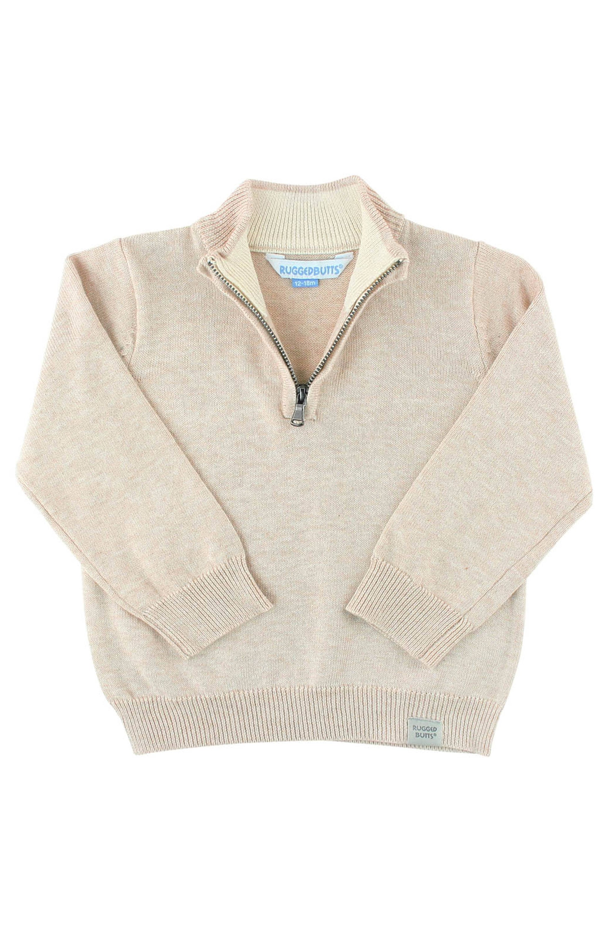 RuffleButts + RuggedButts - Boys Heather Oatmeal Quarter-Zip Sweater