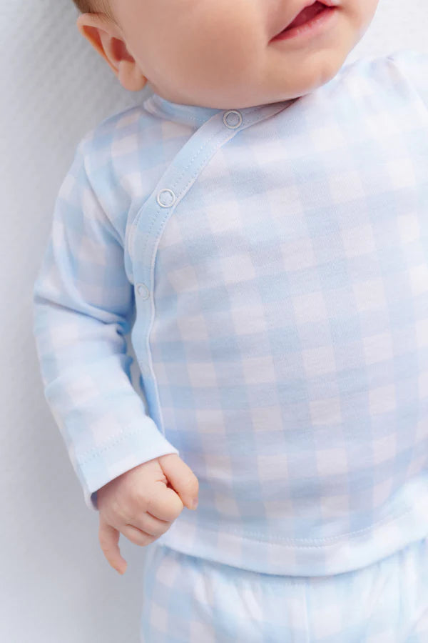 Our Cameron Cross-Front Set in Buckhead Blue Gingham is a nursery essential that features convenient snaps down the front for easy dressing and diaper changes. This precious two-piece set is a thoughtful gift that welcomes baby boys with timeless style and practical design!